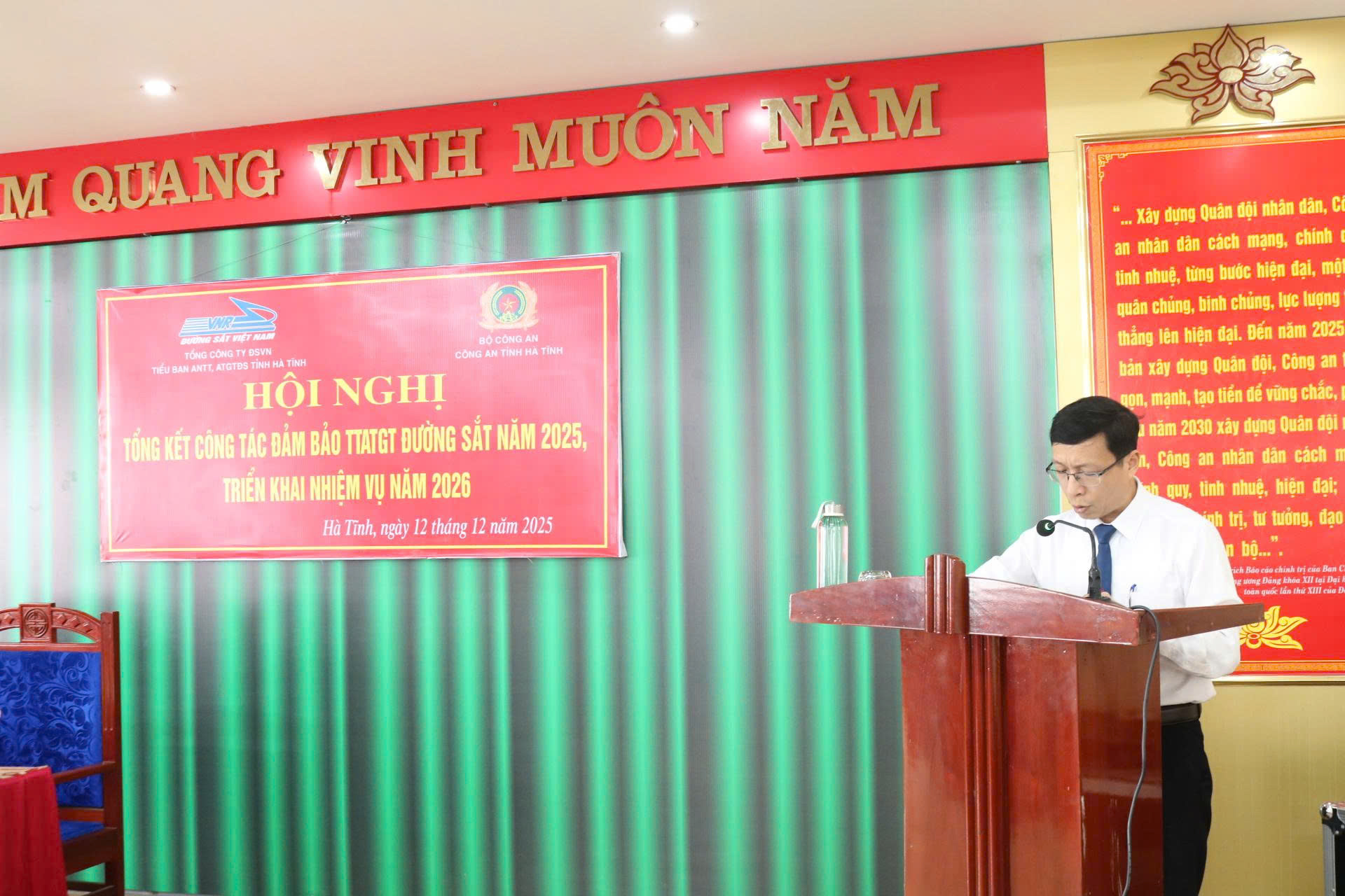 Sáng ngày 12/12, Công an tỉnh Hà Tĩnh phối hợp với Ngành Đường sắt Việt Nam tổ chức Hội nghị đánh giá kết quả thực hiện quy chế phối hợp trong công tác đảm bảo an ninh trật tự, an toàn giao thông đường sắt năm 2025.