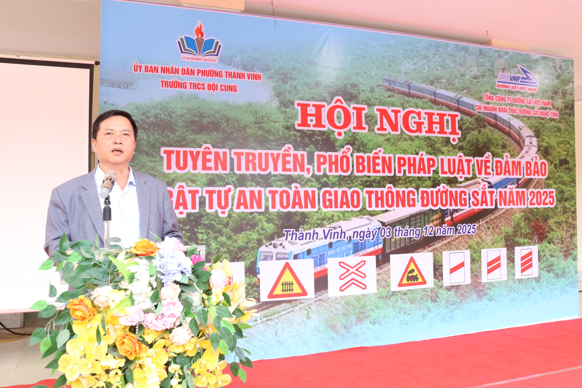 Tham dự hội nghị có đồng chí Đại tá Nguyễn Duy Đông, Phó Giám đốc Công an tỉnh; đồng chí Nguyễn Trần Hoàn, Phó Giám đốc Chi nhánh KTĐS Nghệ Tĩnh, đại diện UBND các xã có tuyến đường sắt đi qua, cùng chỉ huy các phòng nghiệp vụ và Công an các xã liên quan.